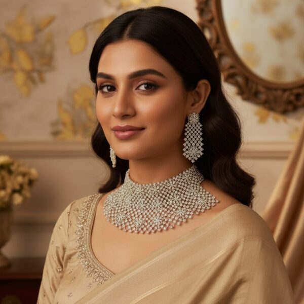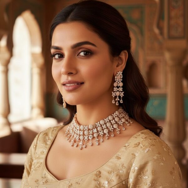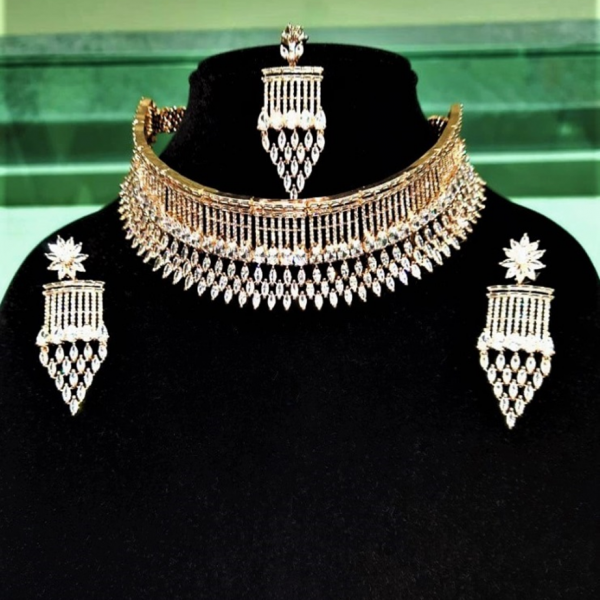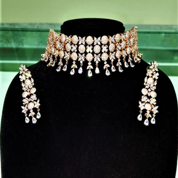 Flexible American Diamond in Rose Gold Plated Choker Set