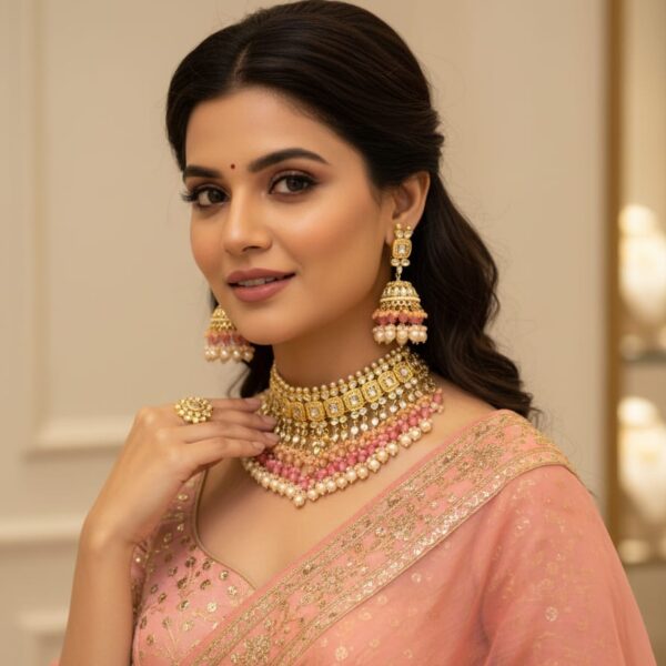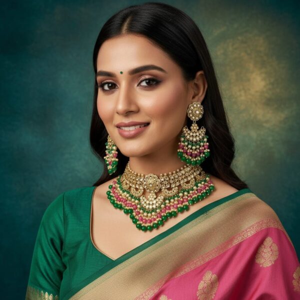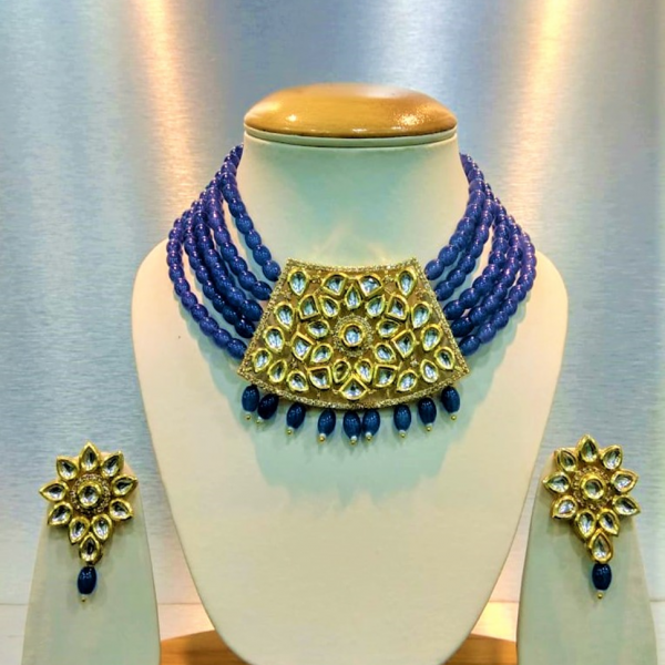 Kundan Polki Auqa Blue Choker/Necklace Set