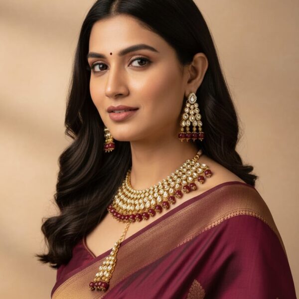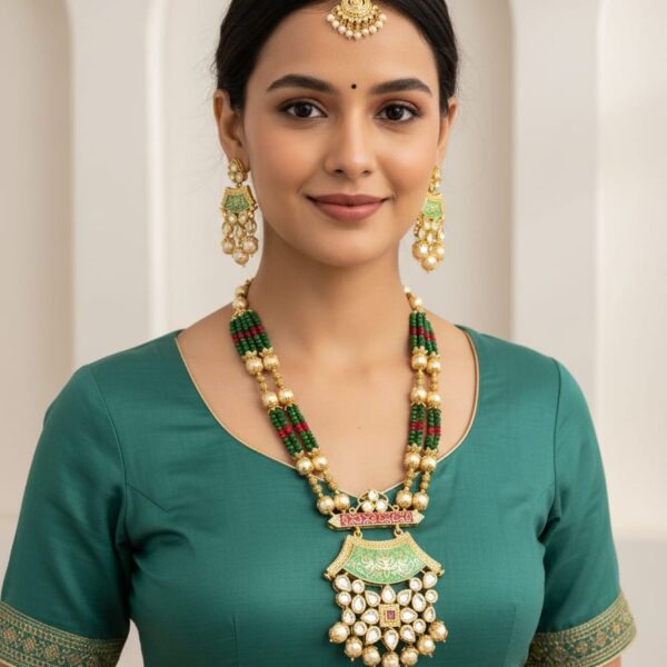 Long Kundan Polki Pendant Set with Designer Double Dori