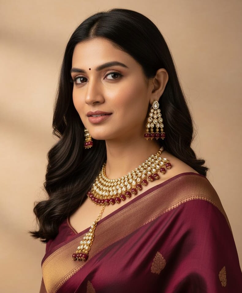 INCLUSIONS:- Necklace: 1, Earrings: 1 Pair, Maang Tika: 1