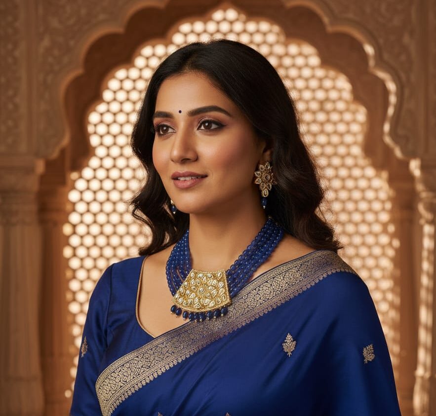 DETAIL:- Kundan Polki Auqa Blue Choker/Necklace Set